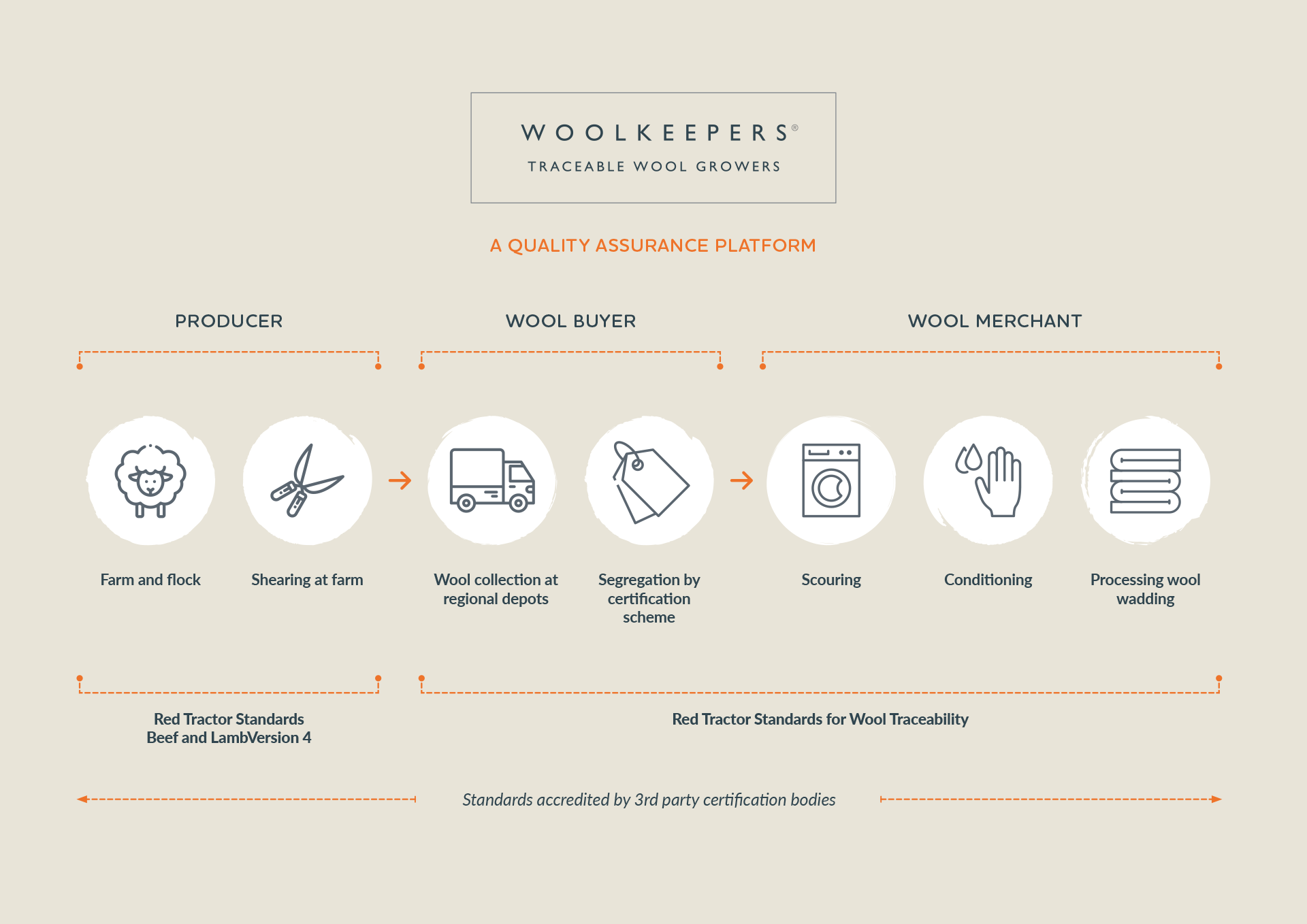 Infographic illustrating a traceable, quality‑assured wool journey from farm to processing